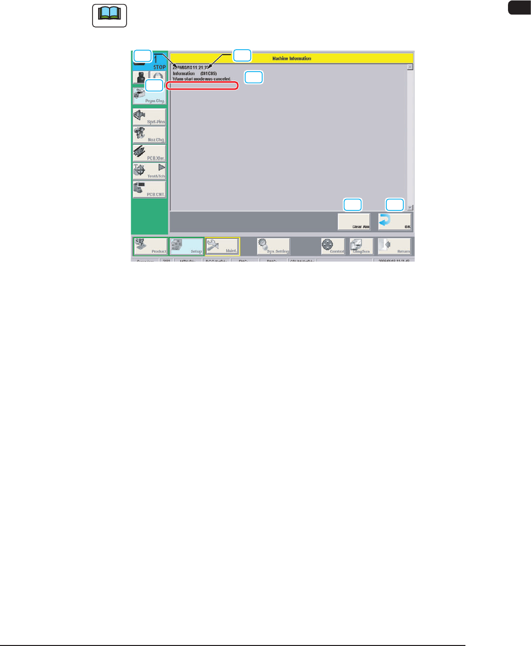 4OM-1610 2-22 3. Machine Information : Chap.2 3.2 Machine Information List Machine Information Code Display Area A (The outline of the Machine Information) Display Area B (The details of the Machine Information) 800301 W…