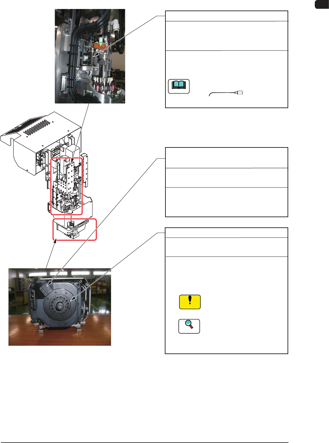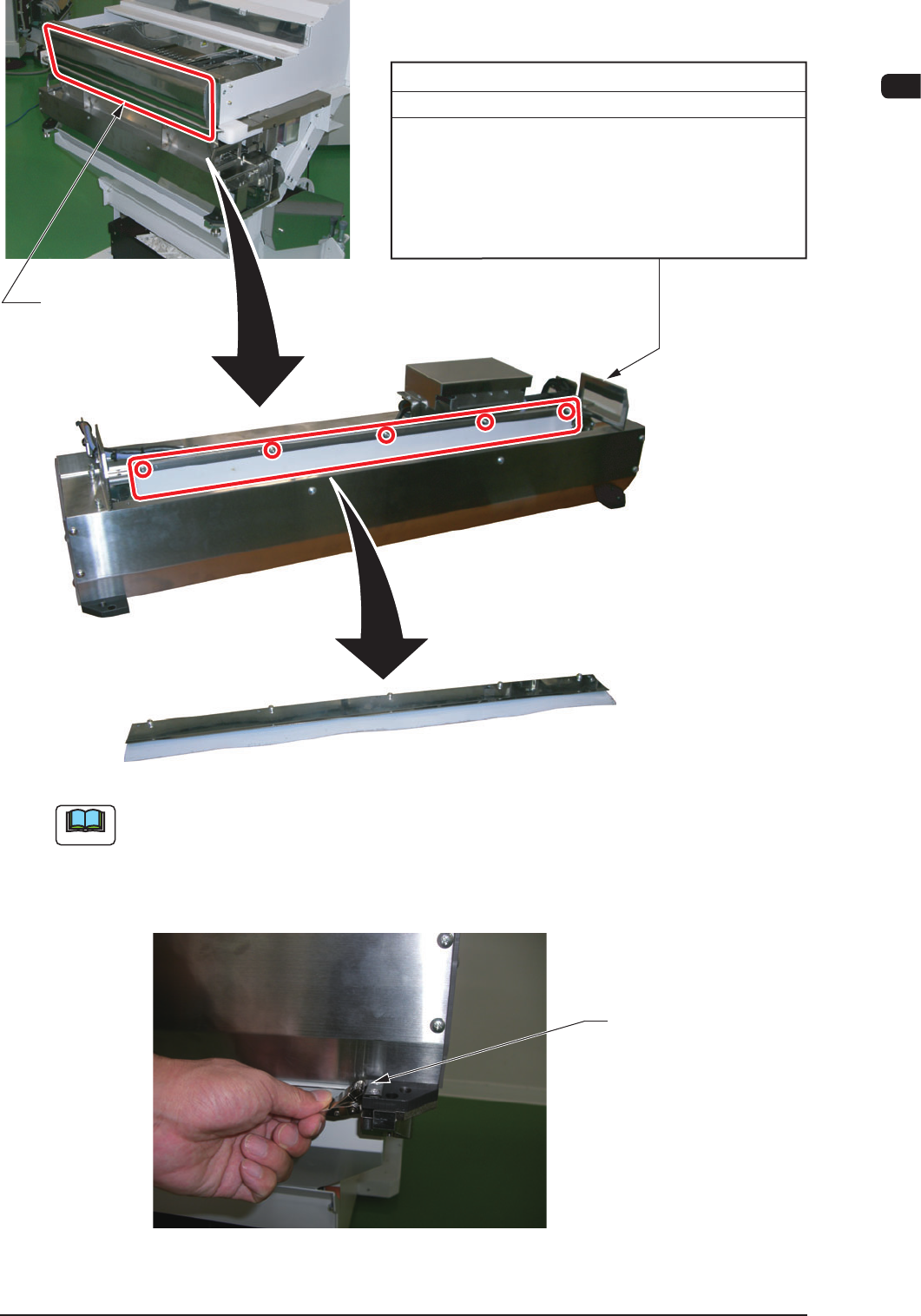 4OM-1610 1-30 3. Maintenance Spots : Chap.1 Note (3) Attach the cutter blade cover. (1) Remove the front safety bar and take out the cutter from the cart. ② ⑥ ① ④ ⑤ ③ ③ ② ⑥ ⑤ When the cutter is mounted on the cart, fix t…