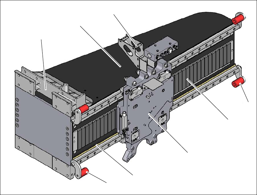 갠트리 암은 탄소 섬유 복합물로 만들어집니다 . 이 기술을 이용하면 어셈블리를 매우 낮은 무게