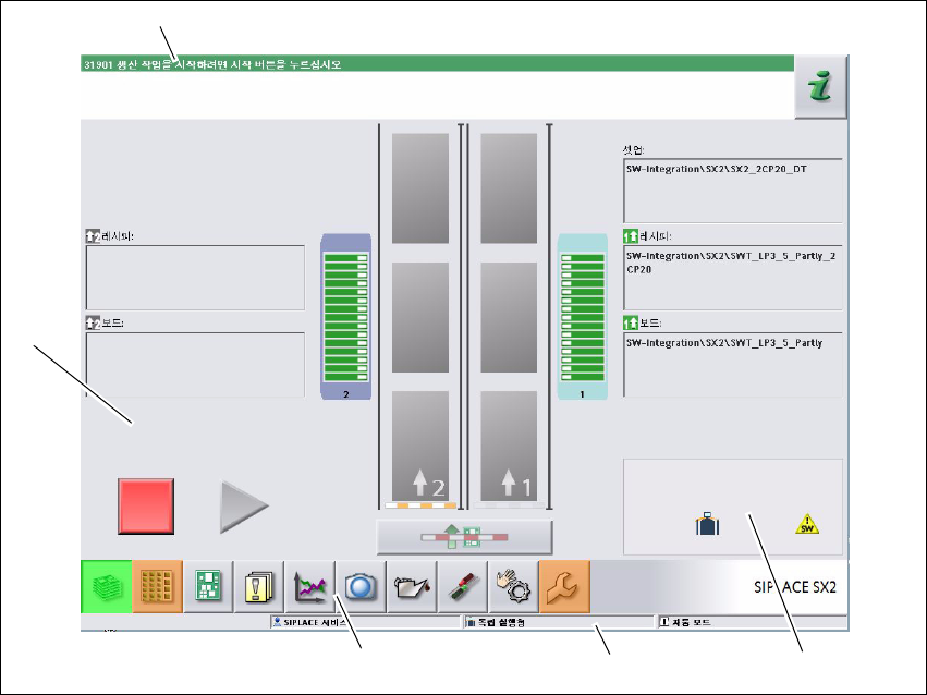그림 . 5.5 - 1 " 생산 " 보기에서의 사용자 인터페이스 컴포넌트 (SIPLACE SX 의 예가 표시 )