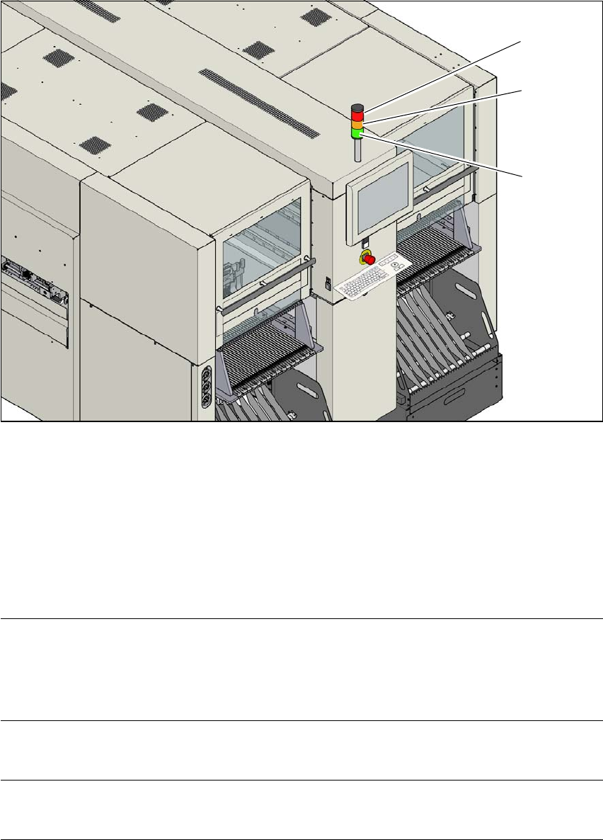 이 표시기 램프는 장비의 작동 상태와 오작동을 표시하기 위해 사용됩니다 . SIPLACE 장비에는
