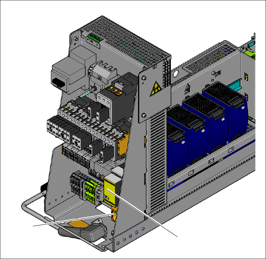 개방되고 PCC(Protective Contactor Combination)(K6) 이 작동합니다 . 갠트리 축의 연결 전압