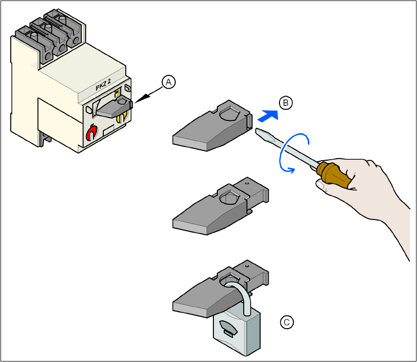 – 가능한 경우 항상 모터 컨택터 등에 잠금 장치를 부착합니다 .