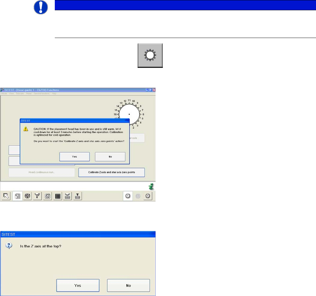 ► Click on the Calibrate Z axis and star axis zero points button.