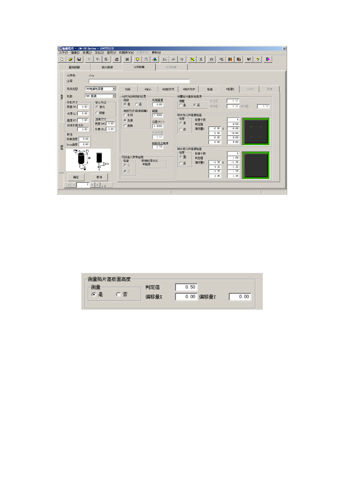 进行 “ 测量贴片基板面高度”、“贴片后元件(面)高度检查” 、“ 贴片前元件面高度检查”、“ 元