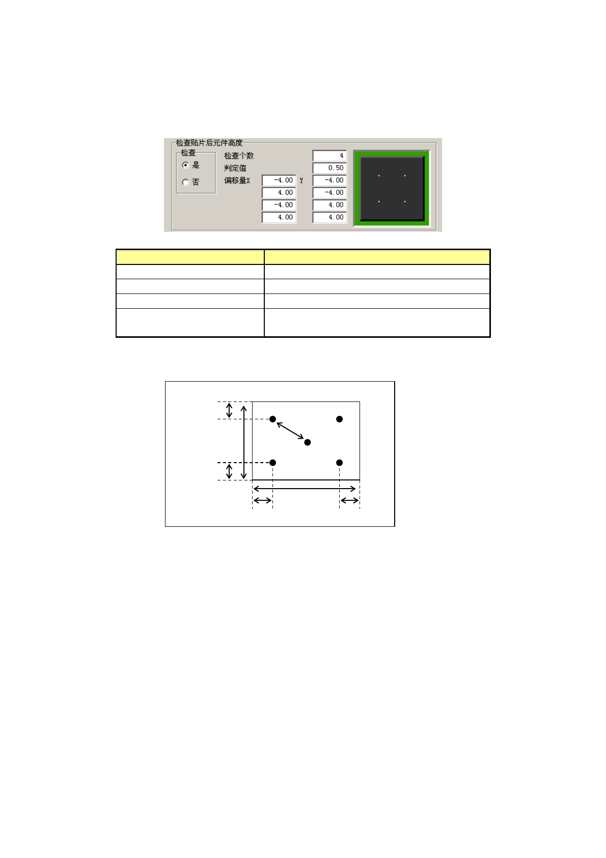 默认值为检查个数 4、判定值 1.000、偏移量 X 90(%)、偏移量 Y 90(%)。