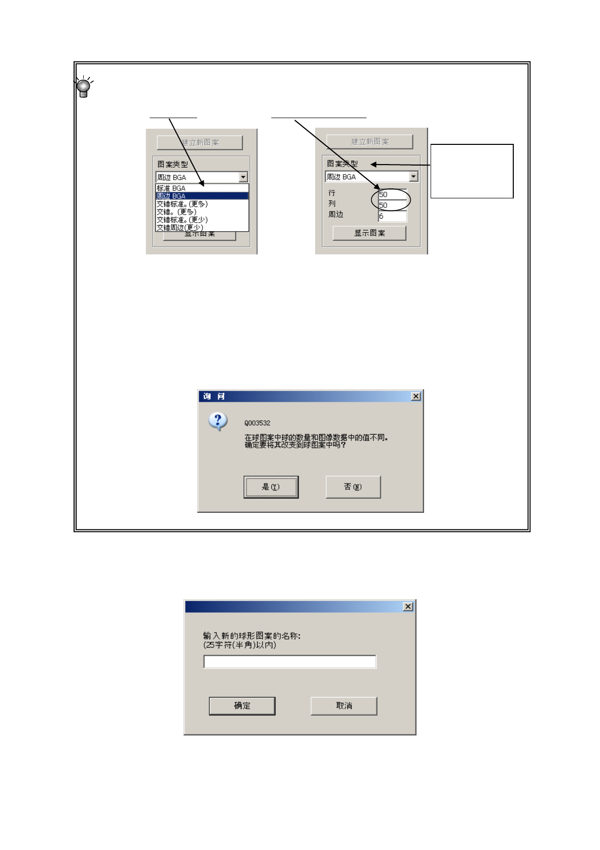 置周边型 BGA、交叉的周边型 BGA(外围多)、交叉的周边 BGA(外围少)球面图案时,要从周边