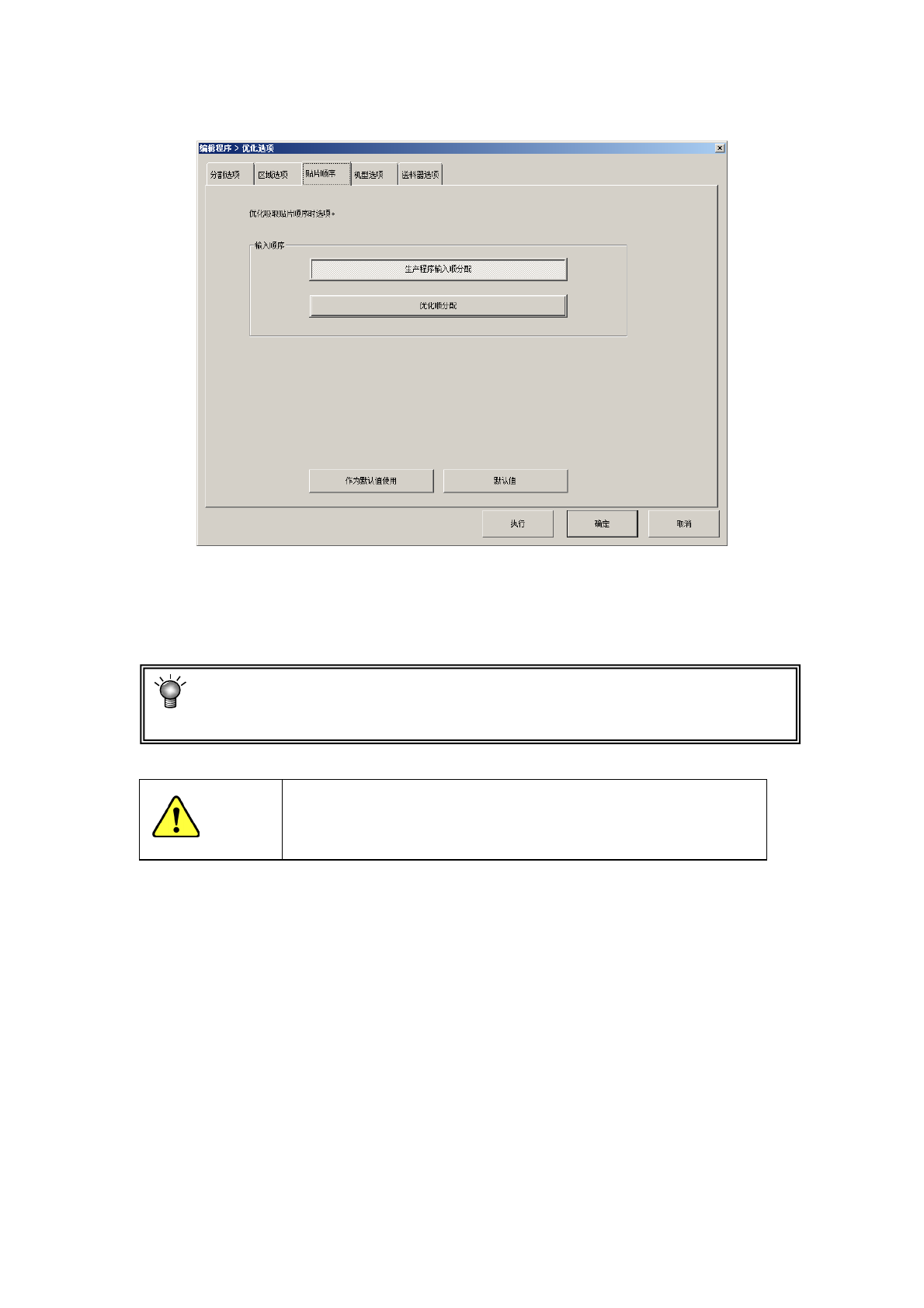 指定贴片数据的排列顺序,是维持输入顺序分配,还是换为优化顺序分配。