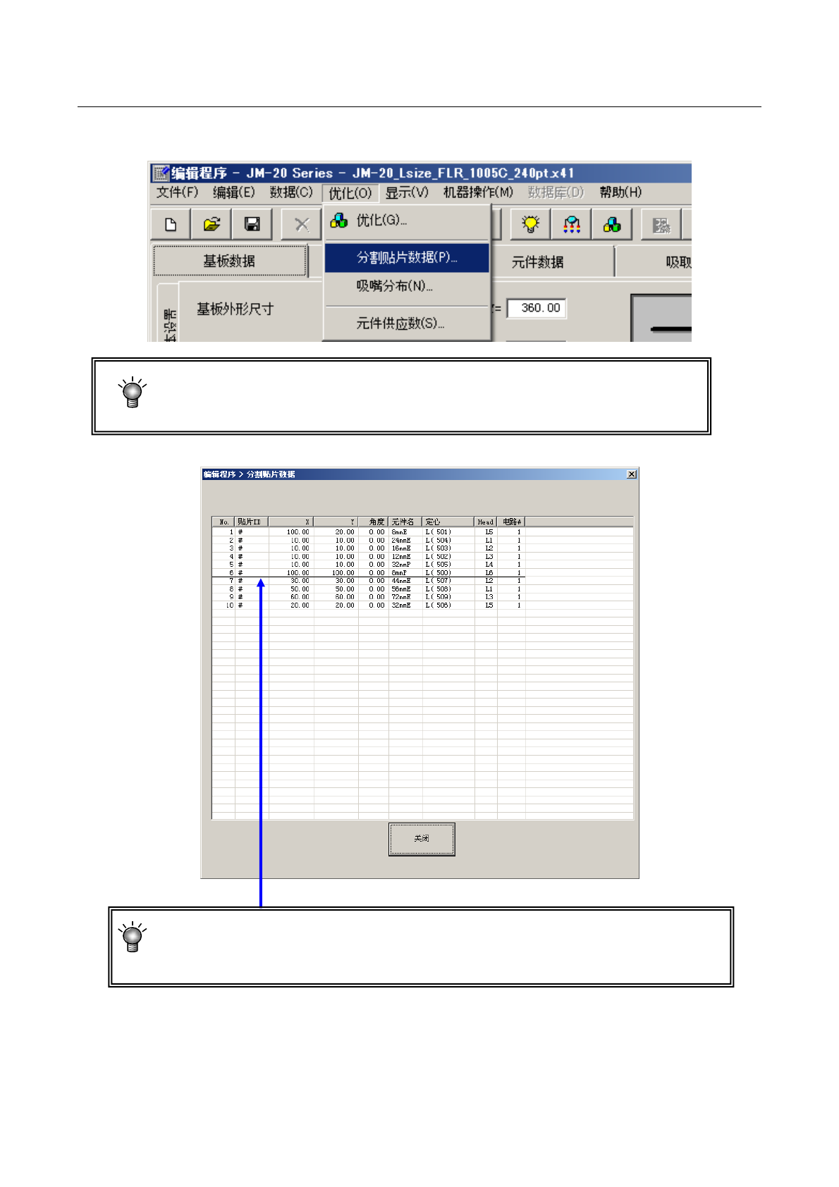 优化顺序显示时的粗线划分,表 示 在 1 次吸取贴片的周期动作中被配对的数据的