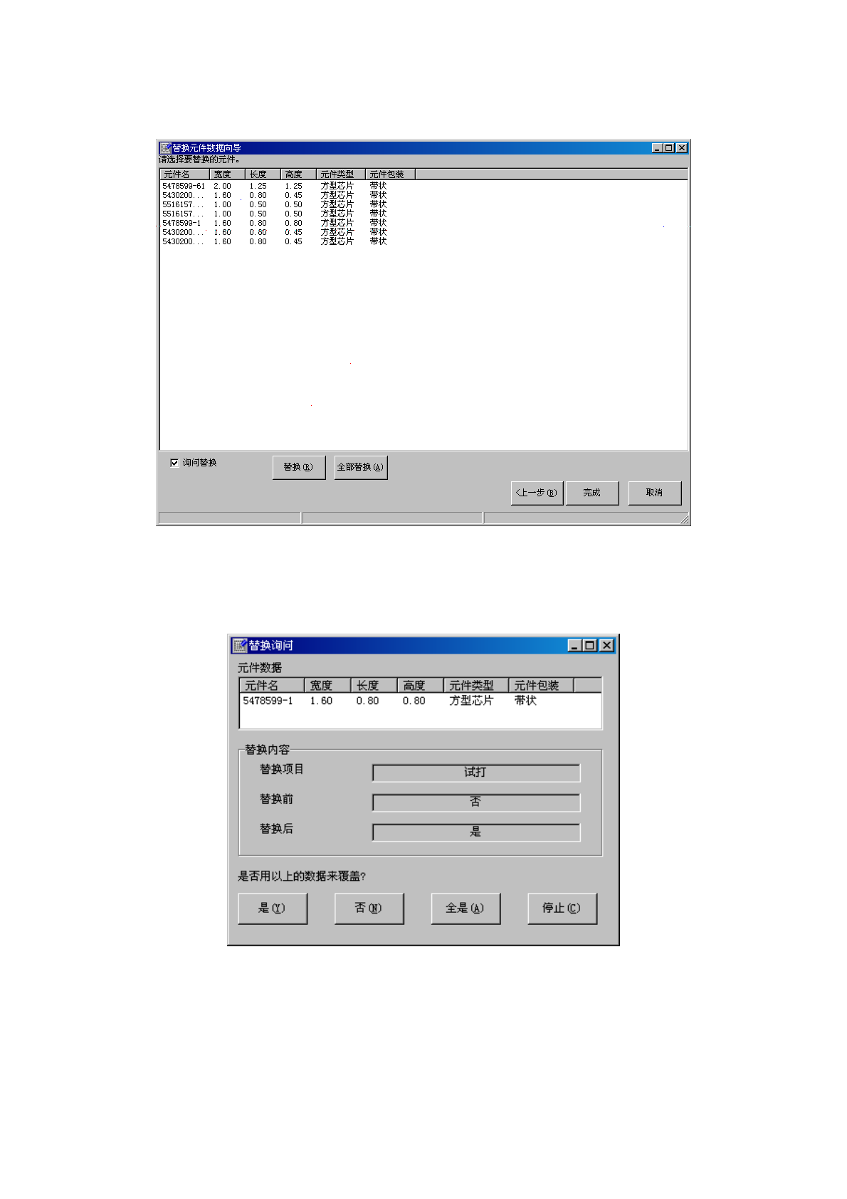 操作手册 Ⅱ 2- 173 3) 元件选择 ( 列表 显示 ) 显示至此输入的 内容。 ● 替换 :逐一替换已选 择的记录的数据 。 ● 全部替换 :进行所有数据的 替换。 ● 替换询问 :选中选项时,每 1 项替换前 ,会显示询问画 面,确认变 更的内容 。