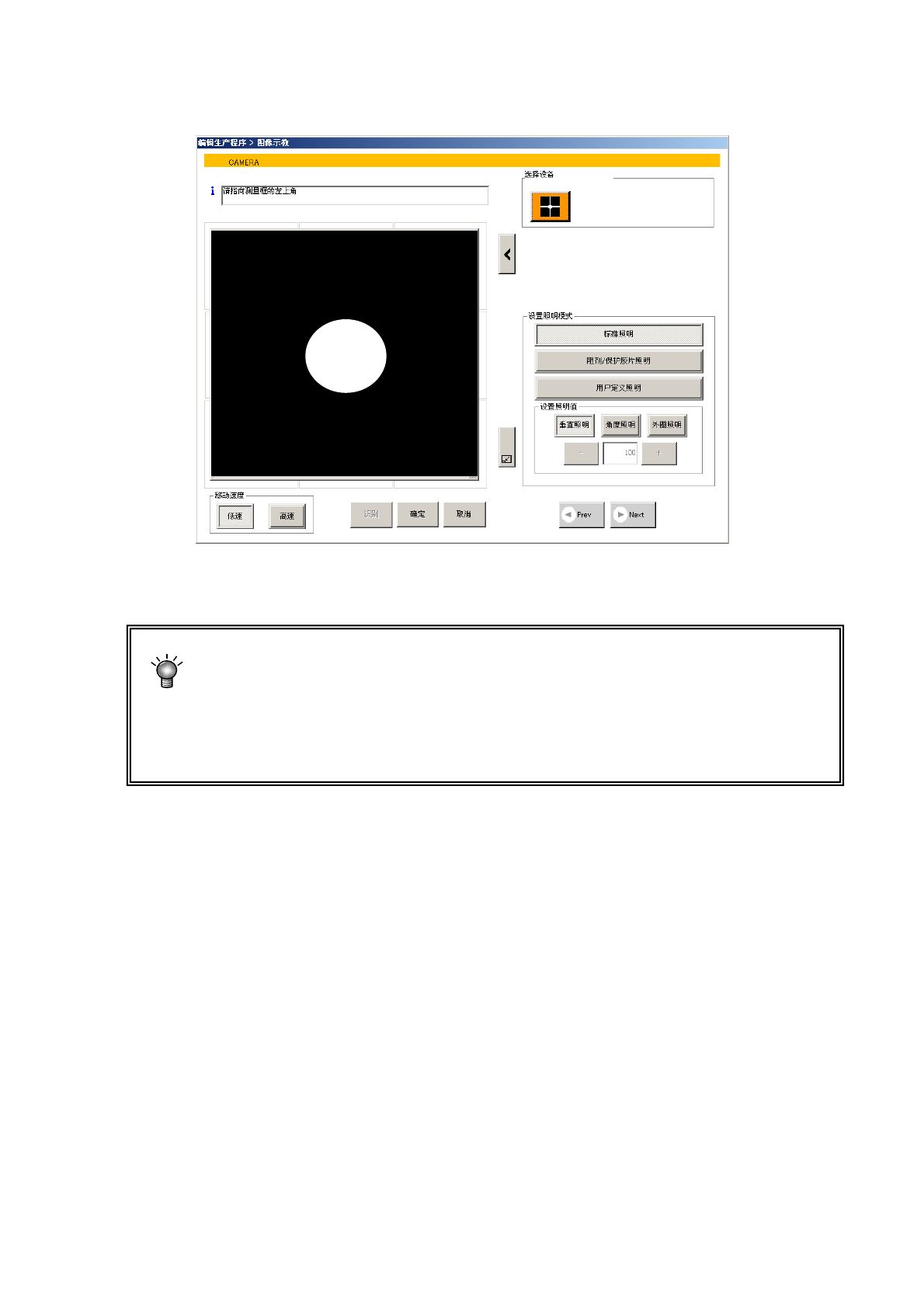 ※如系陶瓷基板的标记(为白色标记时),按下 [示教]按钮后,请按下选择装置的摄像机按