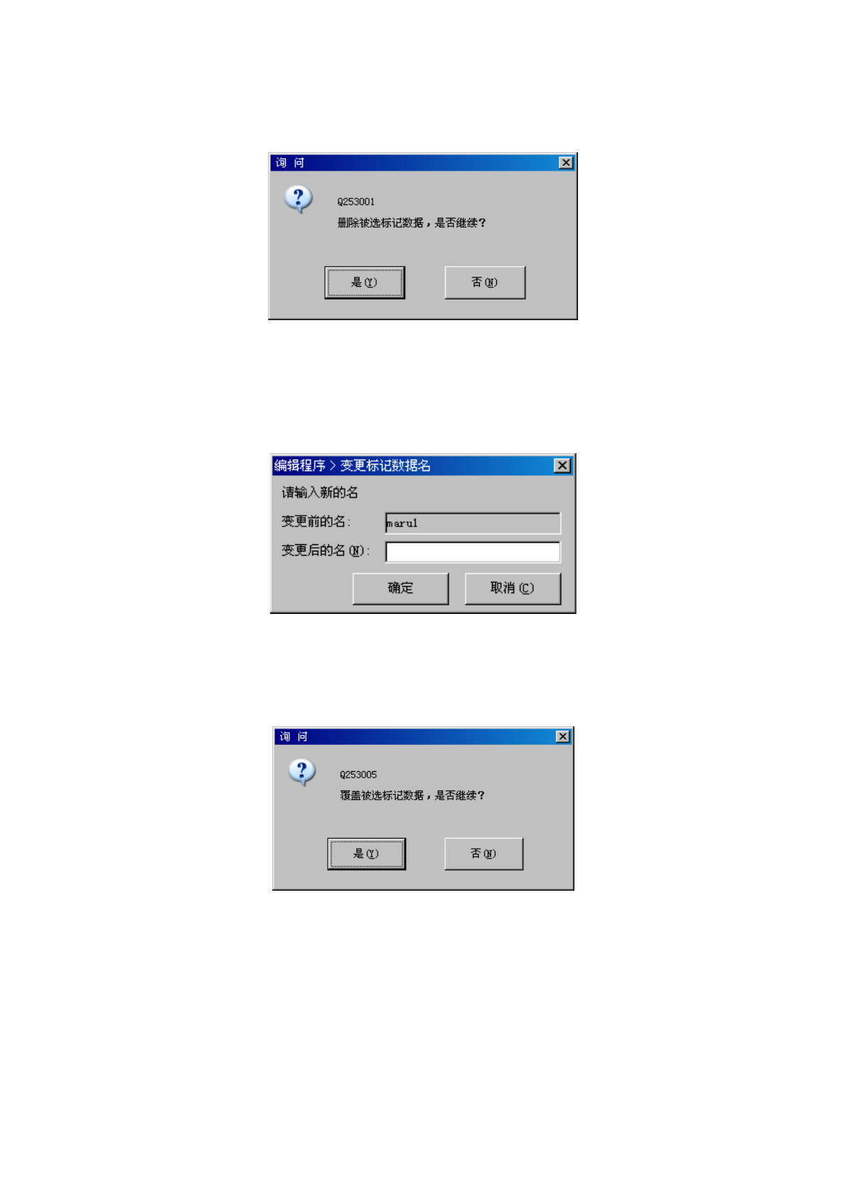 可以更改已经注册的(标记)名称。将光标调整到列表中要变更的数据行,按下「更改名称」按
