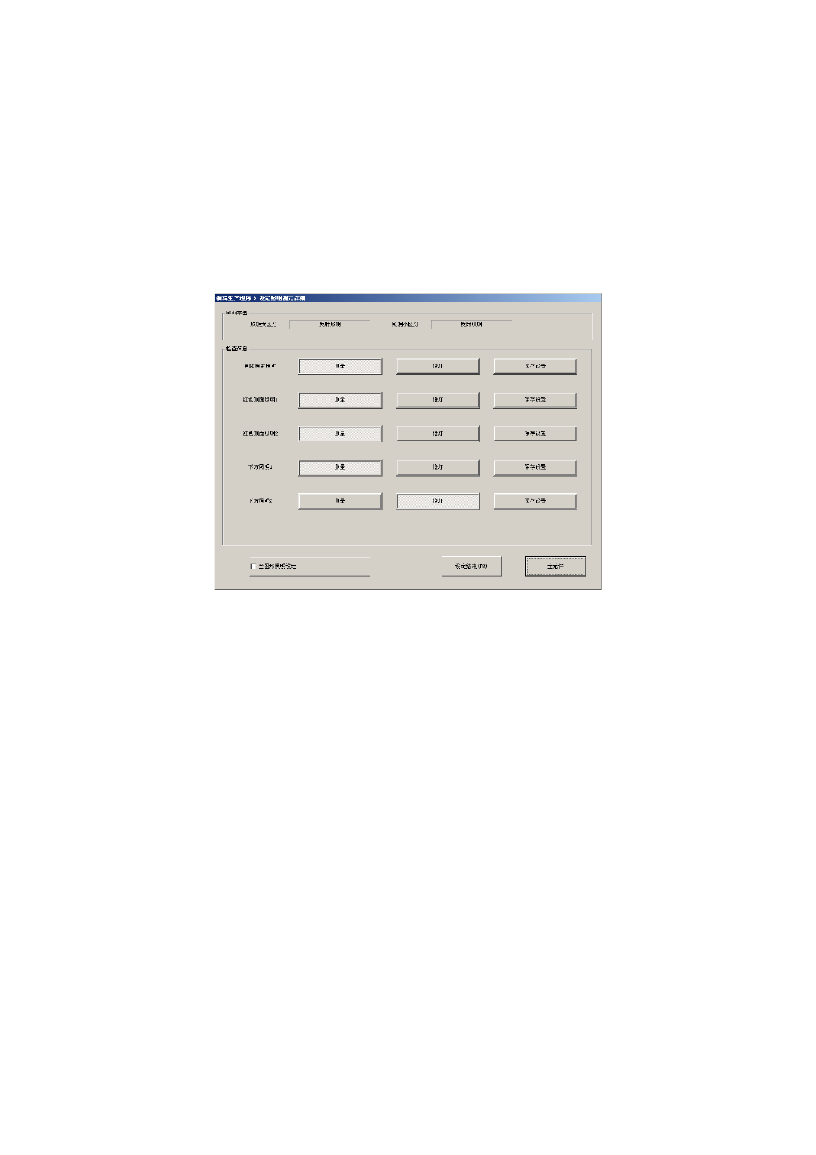 [熄灯] 设置后,关掉该项照明灯,执行照明测量。照明测量正常结束后,照明数据里设置为