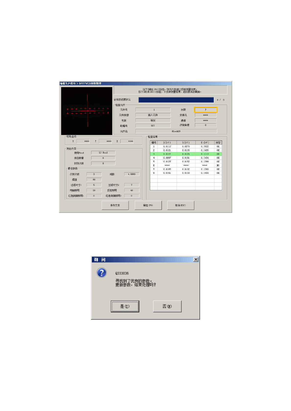 显示检查结果的值。显示 XYθ 的偏移量及判定结果。