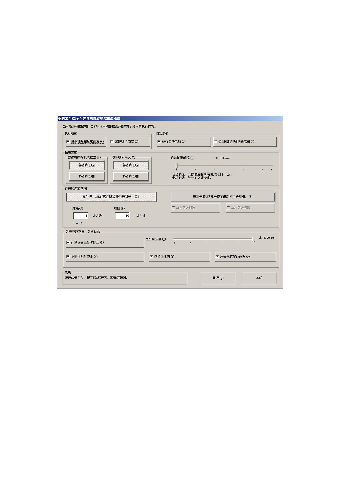 确认监视器中显示的吸取位置,当输入坐标不准确时,可通过示教进行修正。