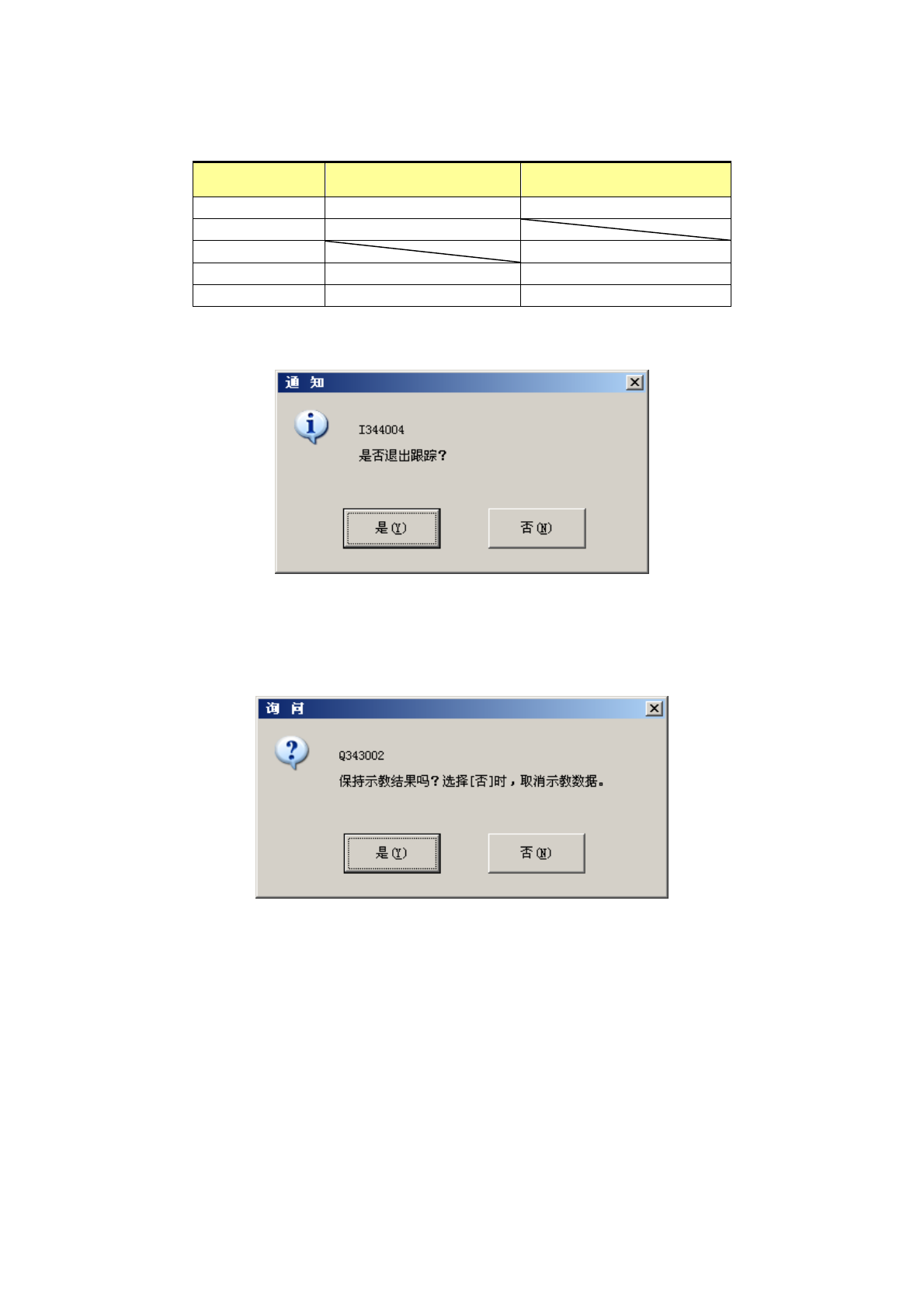 在询问中如选择[否],则放弃跟踪操作中示教的坐标值,回到开始跟踪前的坐标值,结束跟踪。