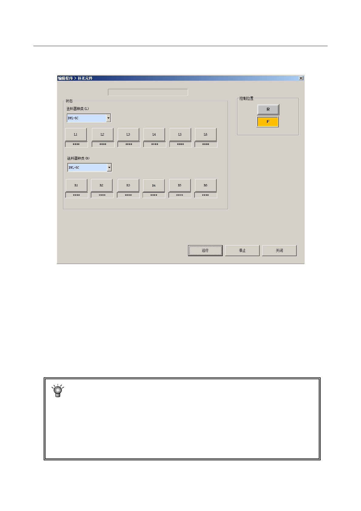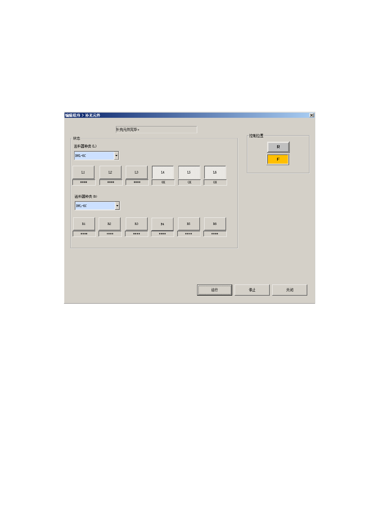 按下[关闭],即返回编辑程序画面。这时,选择的圆型供料器的补满动作会继续进行。如果要使