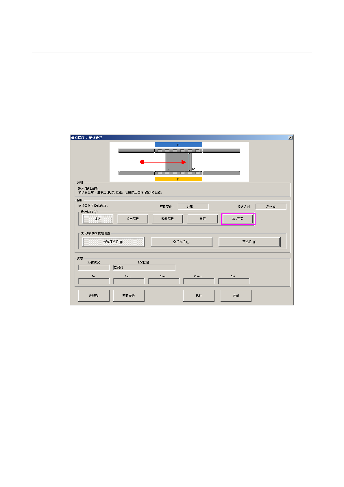 对「基板传送」中挡块位置的夹紧,和以往相同按下「基板装载」按钮进行选择。