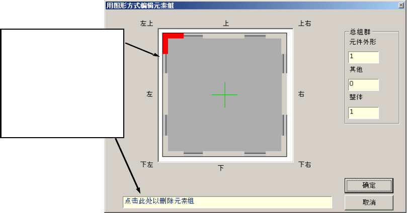 操作手 册Ⅱ 3- 27 (3) 元件要素组 的删除 在角或边的 附近,如 果 将指示标 置于可删除元 件要素组 的位置,在对 话框的下方 就出现提 示 信息。 请在该位置 点击键盘 左 上角的左按钮。