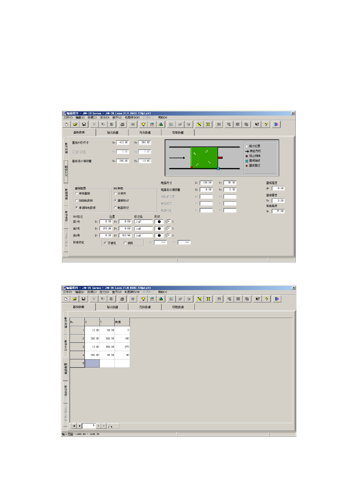 操作手册 Ⅱ 2- 25 13 ) 基板高度、基板 厚度、背面高度 请按照与单板基 板相同的方法输 入。 例 ) 矩阵电路板的数 据输入 以左下方的电路 为基准电路,以 电路的左 下方的角为电路 原点时 ① 前面基准、 L→R 时 ( 外形基 准时 ) ② 前面基准、 L→R 时 ( 外形基 准时 ) 14 ) 夹紧偏 移量(长尺寸基 板对应时) 夹紧偏移量是指 ,在 2 次传送基板时 ,设置检测出基 板的传感器 (HMS ) 检测 位…