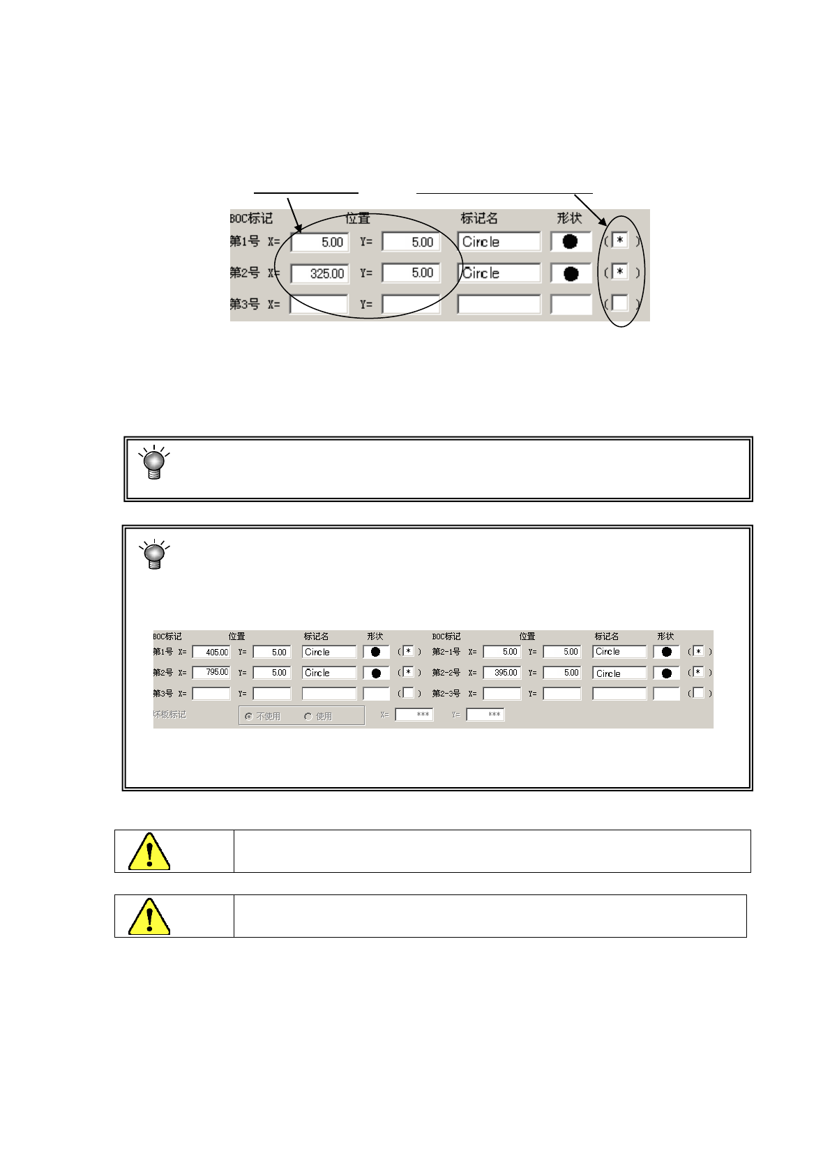 输入从基板位置基准(原点)或电路原点到各BOC标记的中心位置的尺寸。