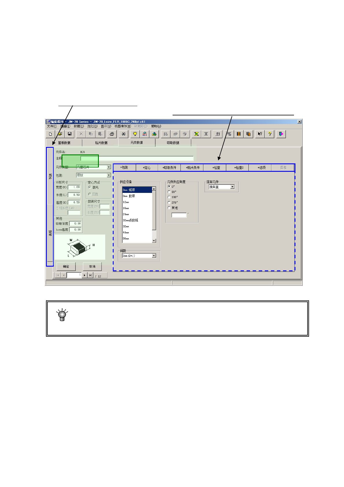 「元件数据」,是针对在「贴片数据」中输入的“元件名称”输入详细的信息数据。