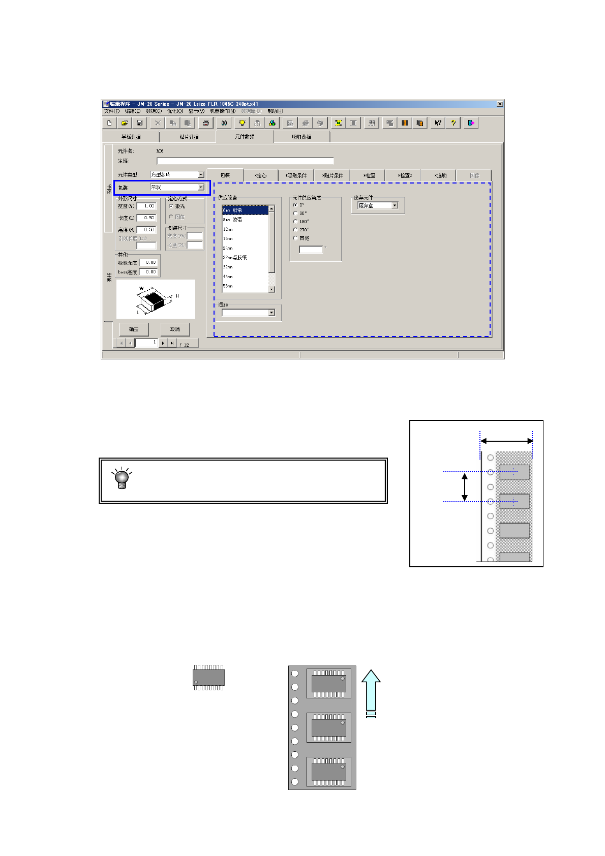以JUKI的元件供应角度为0°,选择带状供料器上的元件包装姿势与之形成的角度。