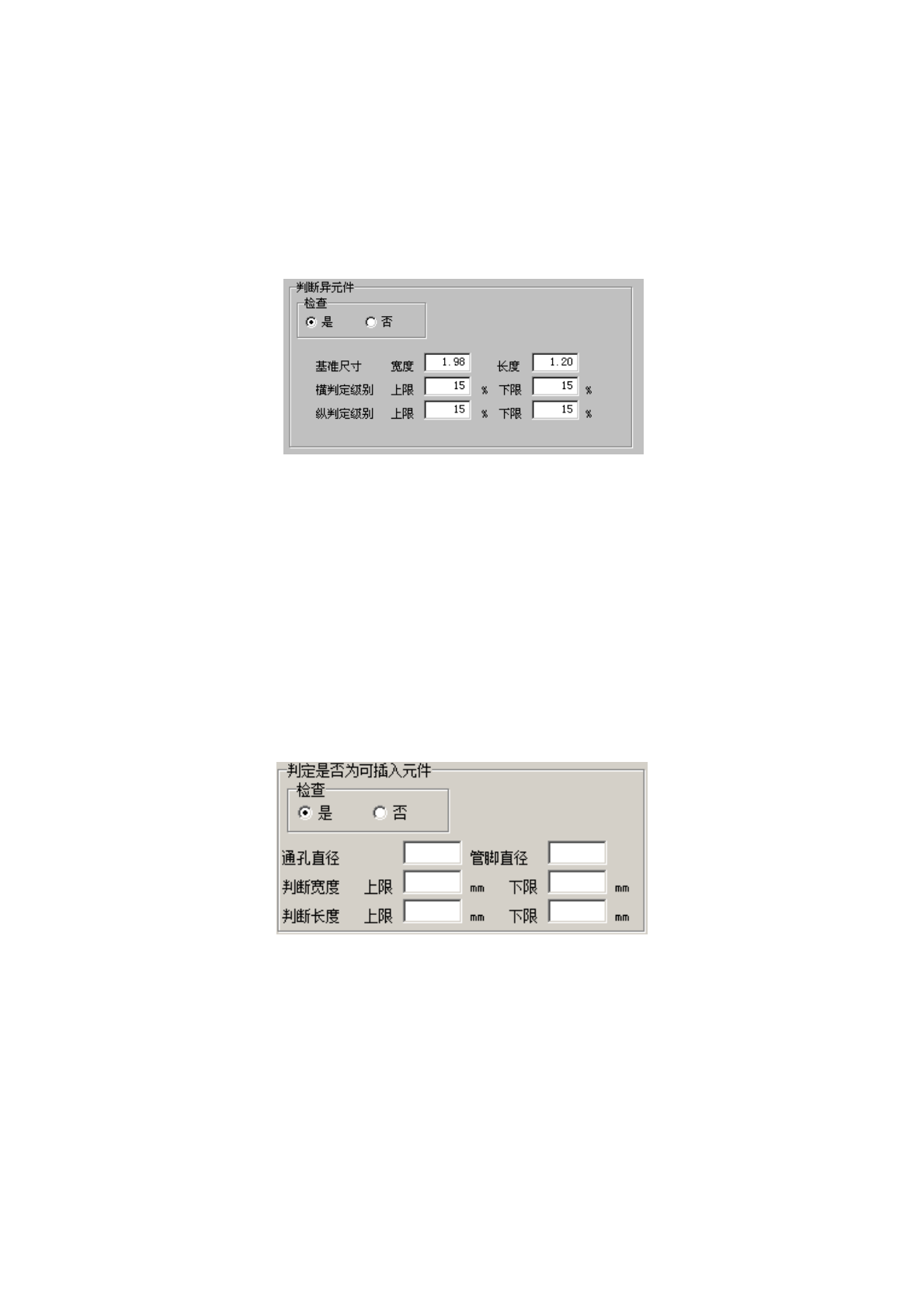 否进行异类元件判断、实施时的基准尺寸、判断级别。