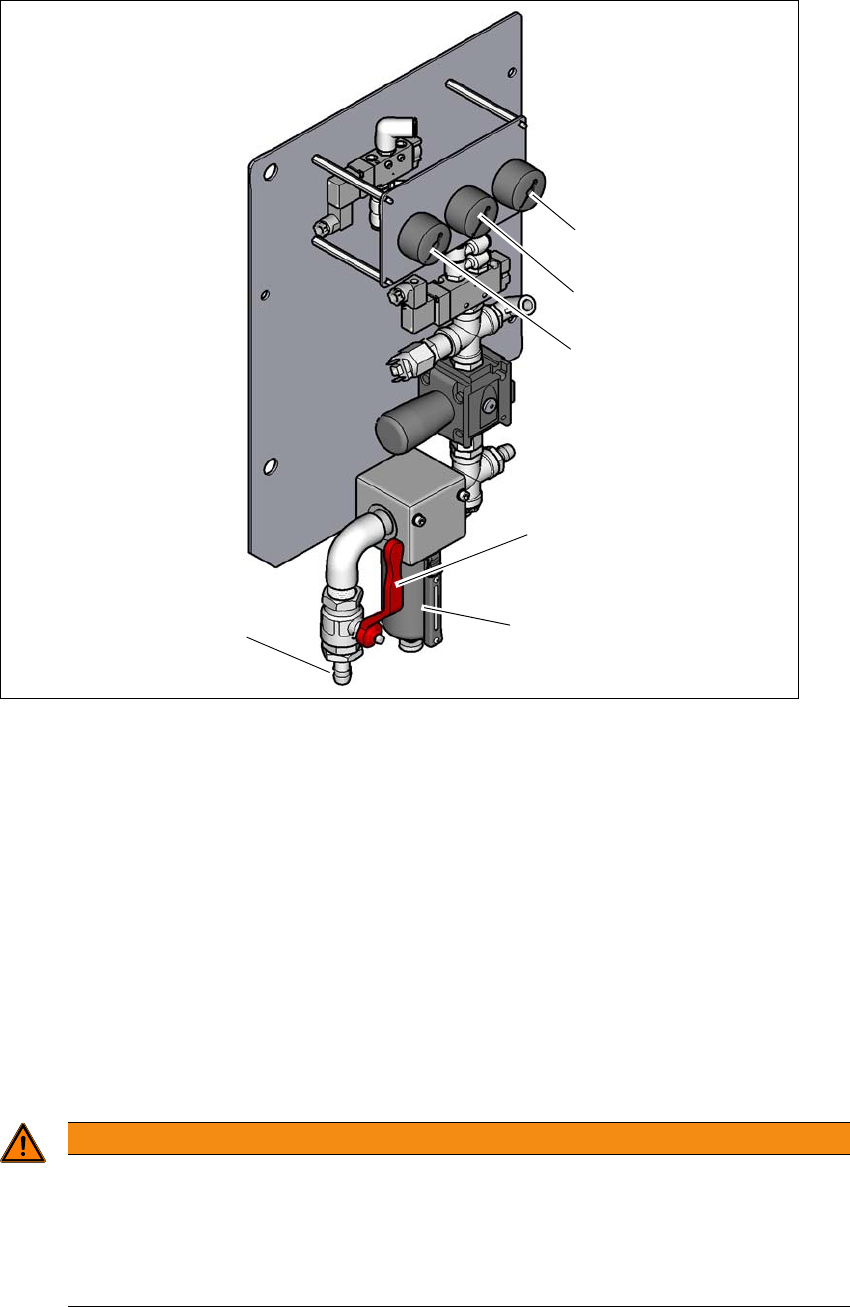 Dźwignię kurka odcinającego (poz. 1 na rys. 2.8 - 1, strona 100) przełączyć z położenia pio-