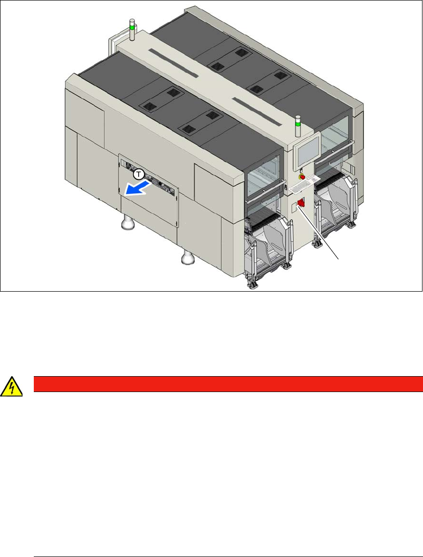Rys. 2.9 - 1 Umiejscowienie przyłączy zasilania prądem elektrycznym na automacie (przykład SIPLACE X2 S / X3 S