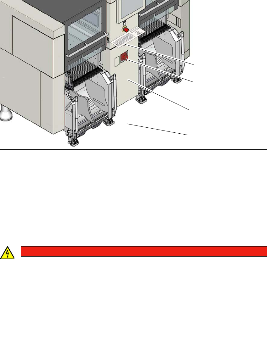 Rys. 4.2 - 2 Umiejscowienie przyłączy zasilania prądem elektrycznym na automacie (przykład SIPLACE X2 S / X3 S