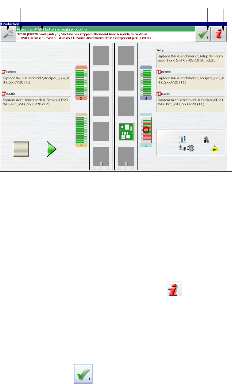 Rys. 5.6 - 1 Widok "Produkcja" z komunikatem alarmowym (na przykładzie SIPLACEX4i)