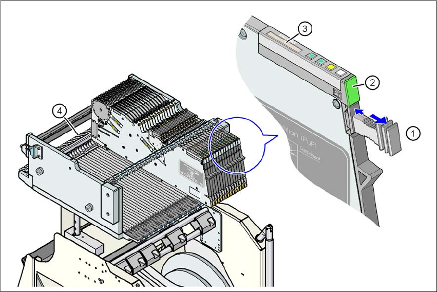 Instrukcja eksploatacji SIPLACE seria X 5 Zadania przy maszynie Od wersji oprogramowania 706.1 SP1 Wydanie 10/2014 5.9 Przeprowadzenie obej ś cia kontrolnego 305 5 Rys. 5.9 - 3 Blachy rozdzielcze w pojemniku na pasy (1) …