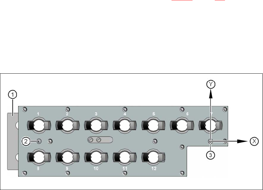 Każdy magazynek zmieniacza pipet ma dwa znaczniki, jeden do wyznaczania pozycji a drugi do