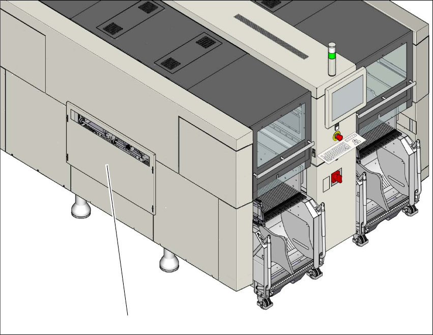 Rys. 2.6 - 2 Położenie przycisków Start (zielone) na automacie (przykład SIPLACE X2 S / X3 S / X4 S)