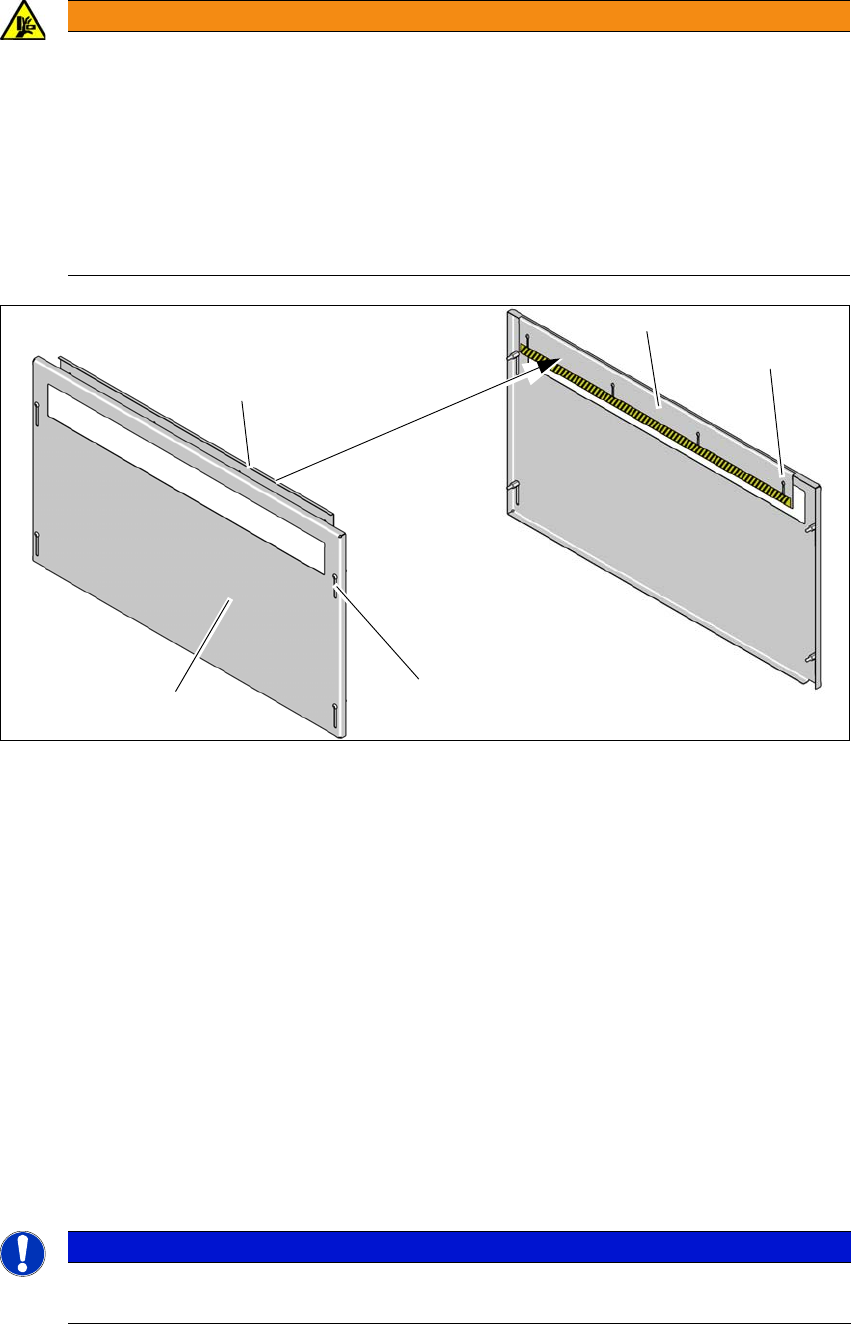 Zamontuj zabezpieczenie przed włożeniem rąk (1) na taśmie wlotowej i wylotowej.