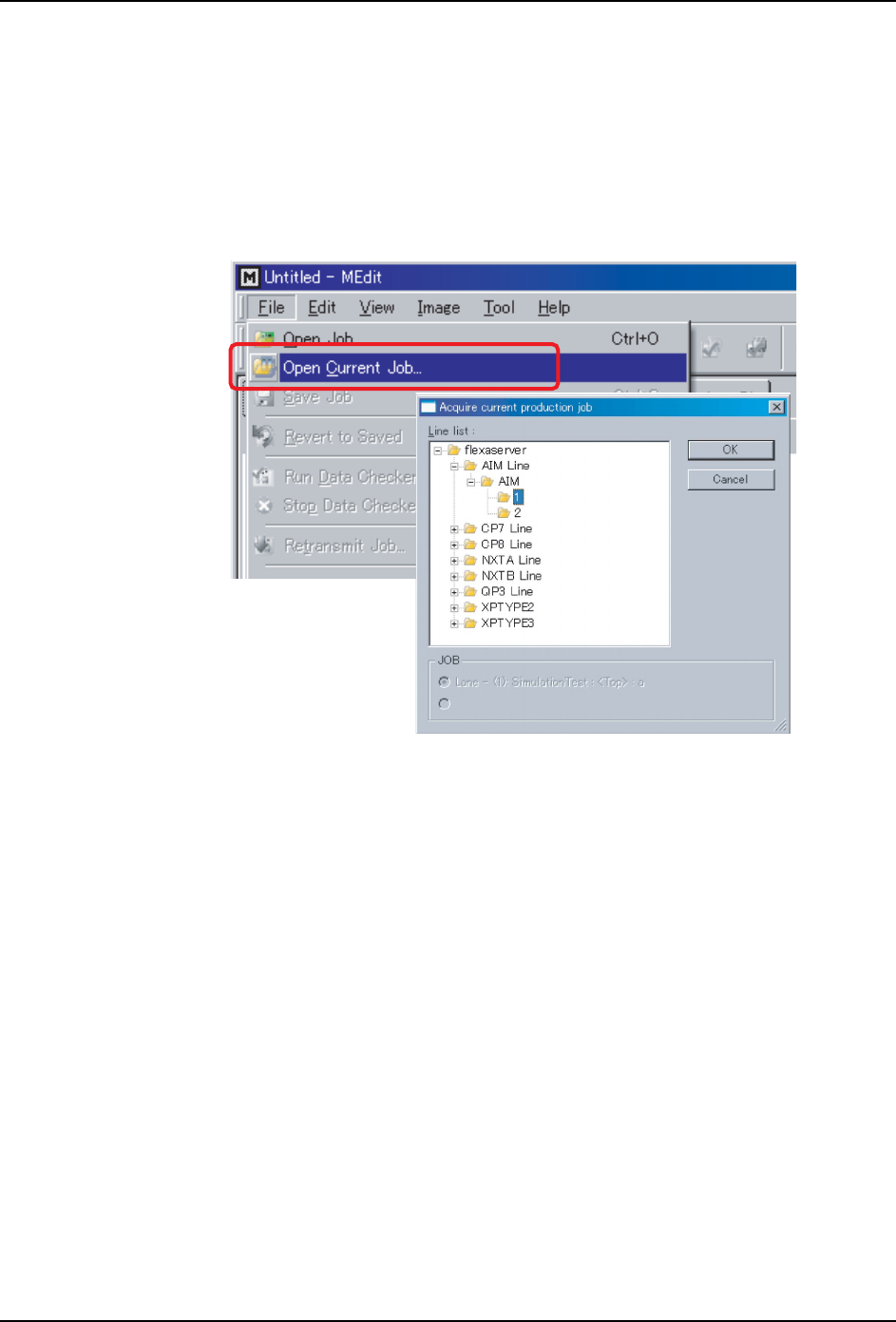 备注 ) 利用 [Open Job] 指令打开不在机器上的 Job,不能通过这种方式在 MEdit 将某一打开的 Job 传