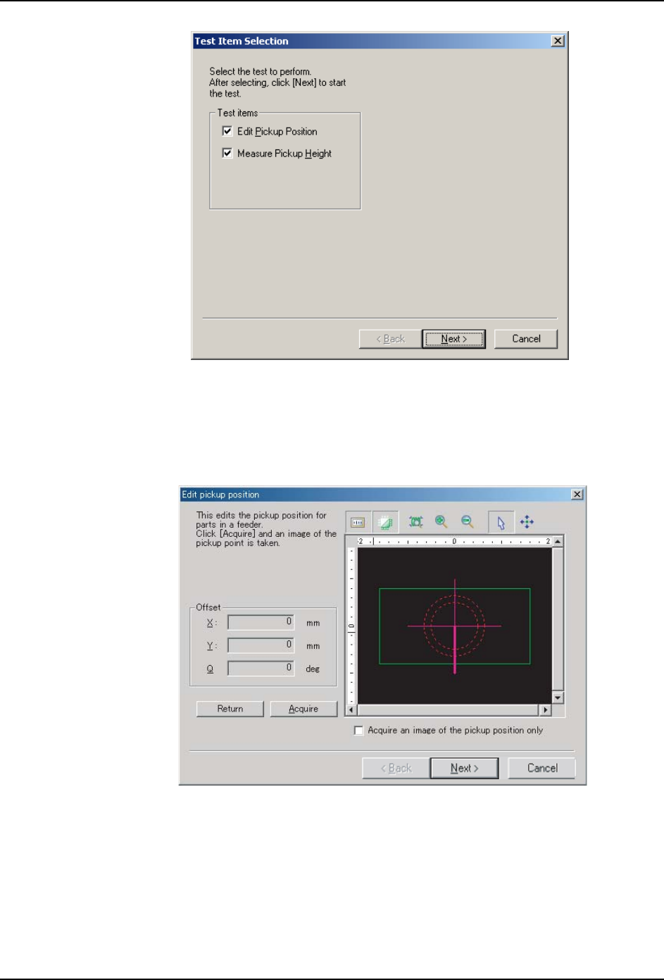 10.弹出 [Edit pickup position] 步骤。请确认已经将元件放在正确的位置 ( 请参考“6.6.4
