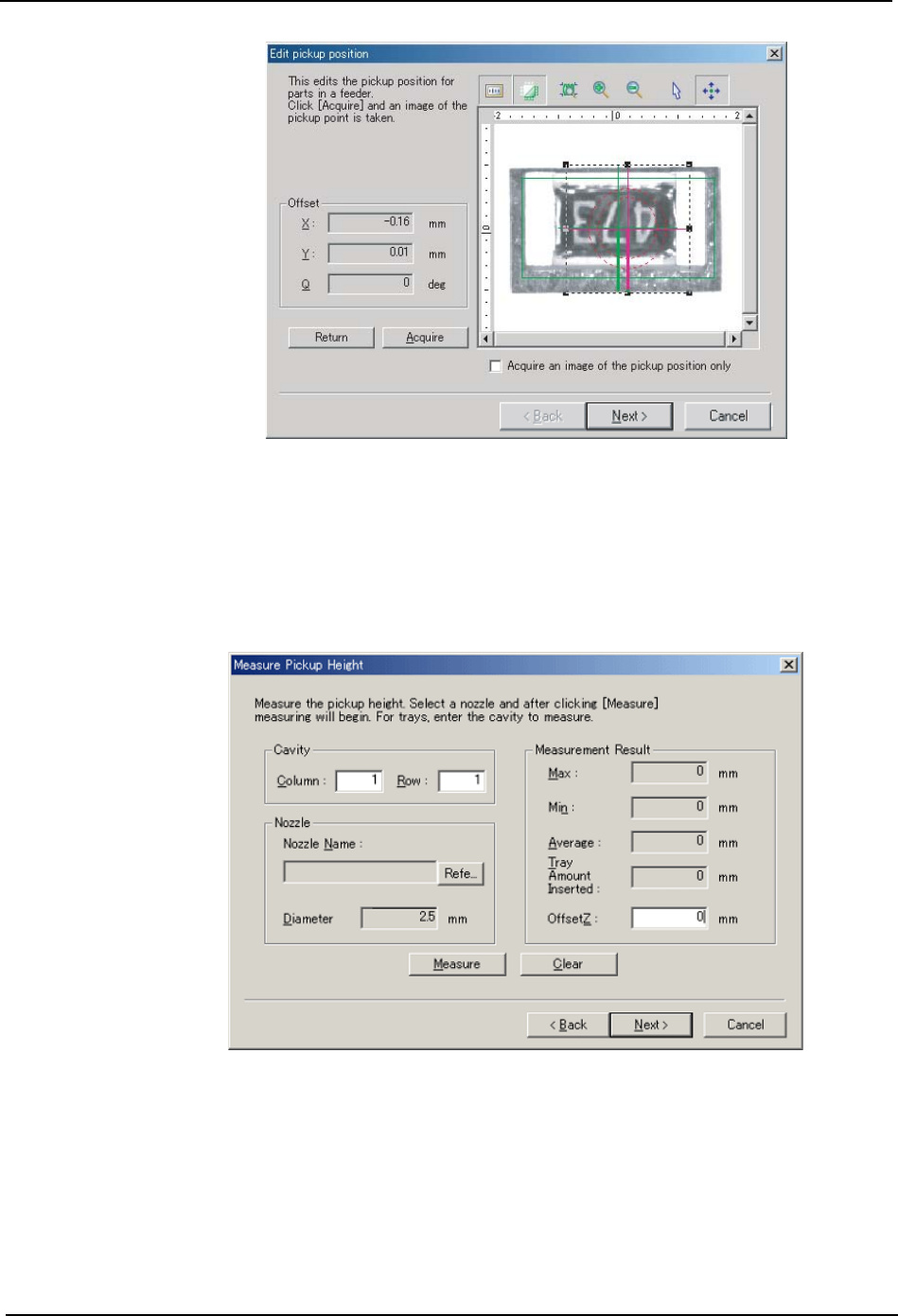 13.弹出[Measure Pickup Height]步骤。请确认已经将元件放在正确的位置 (请参考“6.6.4