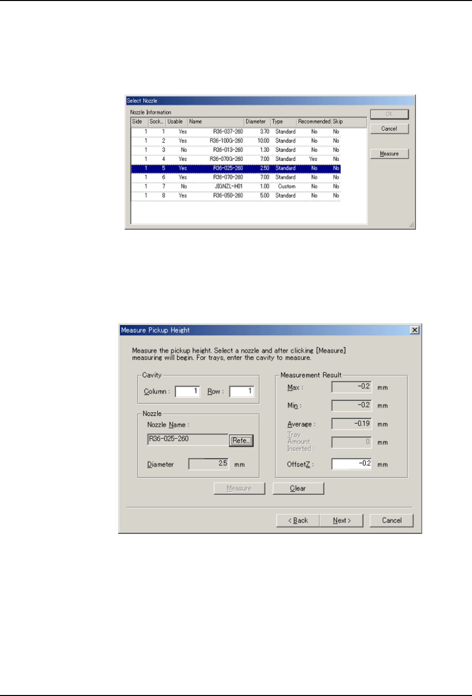 备注 ) 如果模组还没有执行校正则不就不可能知道吸嘴平台上出现的吸嘴和吸爪,单击 [Measure] 检