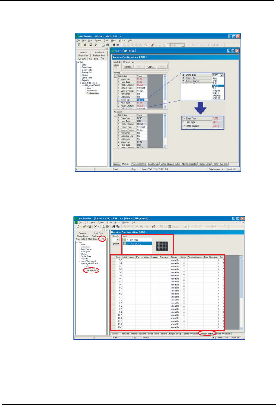 3.Job 编制器 QD057-03 26 AIM 编程手册 2. 选择了对象模组后,指定对象平台 ( 料盘单元 L。 ) 3. 请确认对象平台是否没有被分配了顺序 , (即 Qty (贴装元件 点数)为 0) 。 4. 对于相对的平台,请按照通常分配顺序 。 35*( 02PRG-0015
