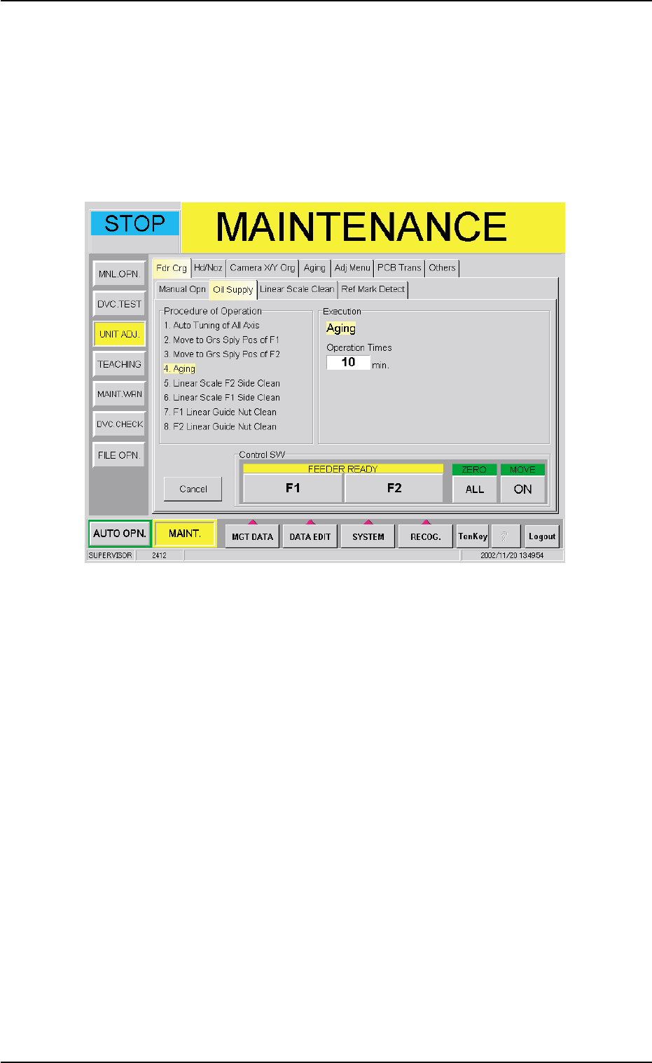 (7) Press the [EMERGENCY STOP] switch and open the F1 and cen-