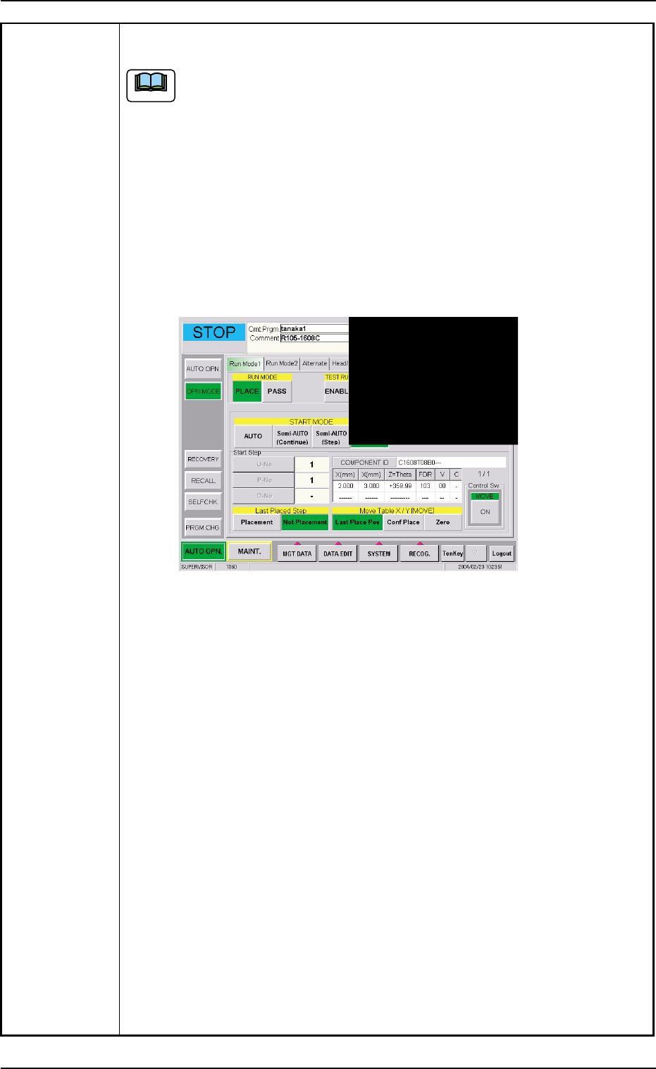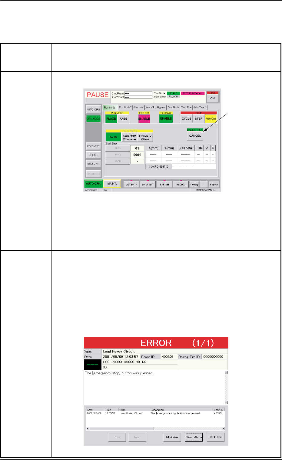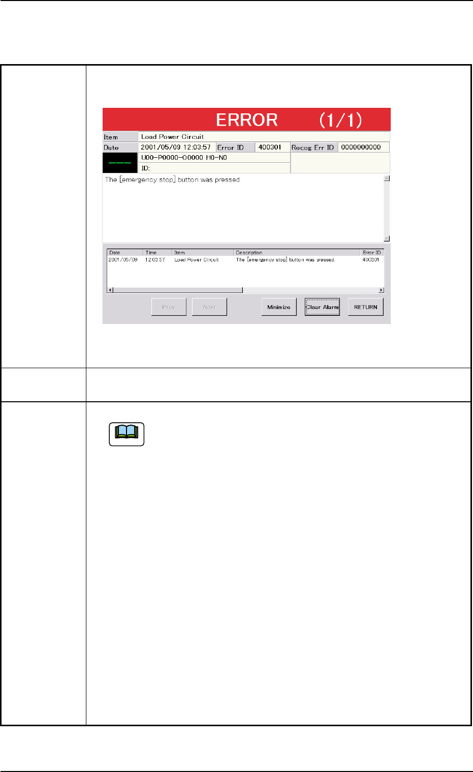 2.3.2 During Pass Operation T able 4B6 Symptom (1) The LED of the [POWER ON] button illuminates in red and the following window opens. Fig. 4B1 1 Cause (1) An [EMERGENCY STOP] switch was pressed. Remedy (1) Press the [RE…