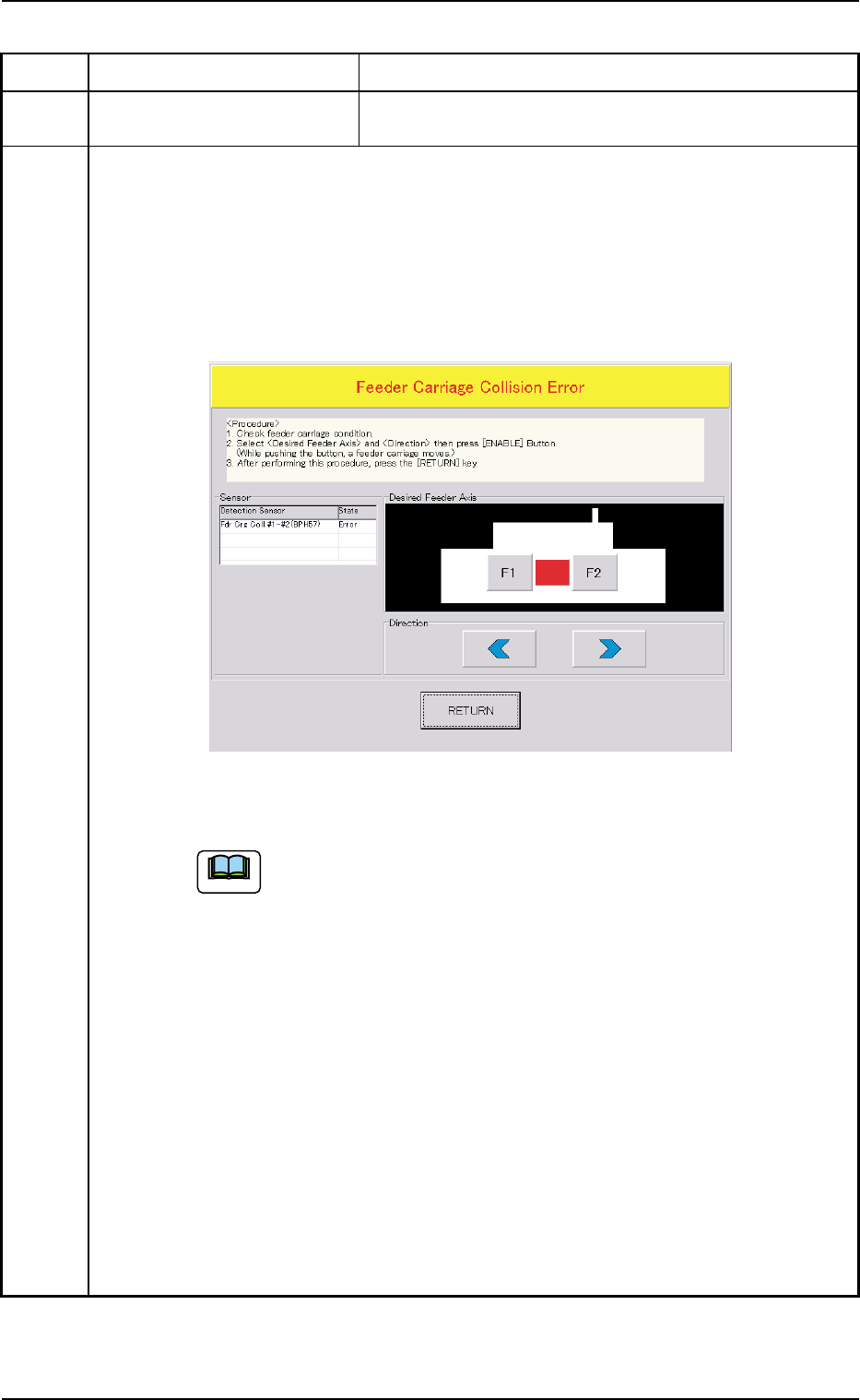 dure to cancel the error, the feeder carriage collision error will be