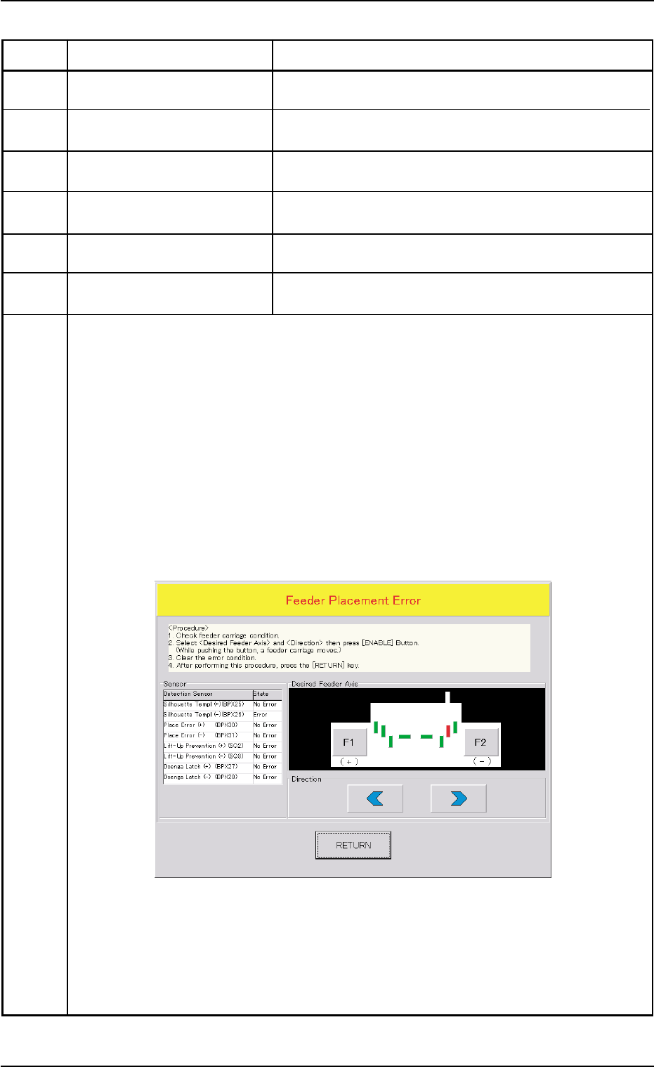 (Remedy 1) When the [RETURN] button is pressed, the "Feeder Placement Error" window