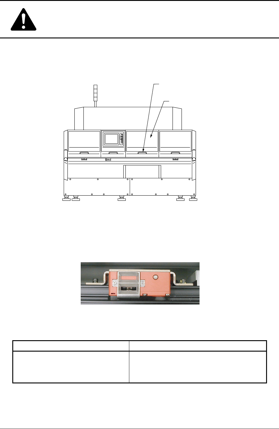 Safe-19 AIL01E-P Safety Precautions T able 1X3 Switch Name Countermeasures (a) When the lamp of the [READY] button is "OFF", the [W ork Area Safety Door] switch is released, making it possible to supply compone…