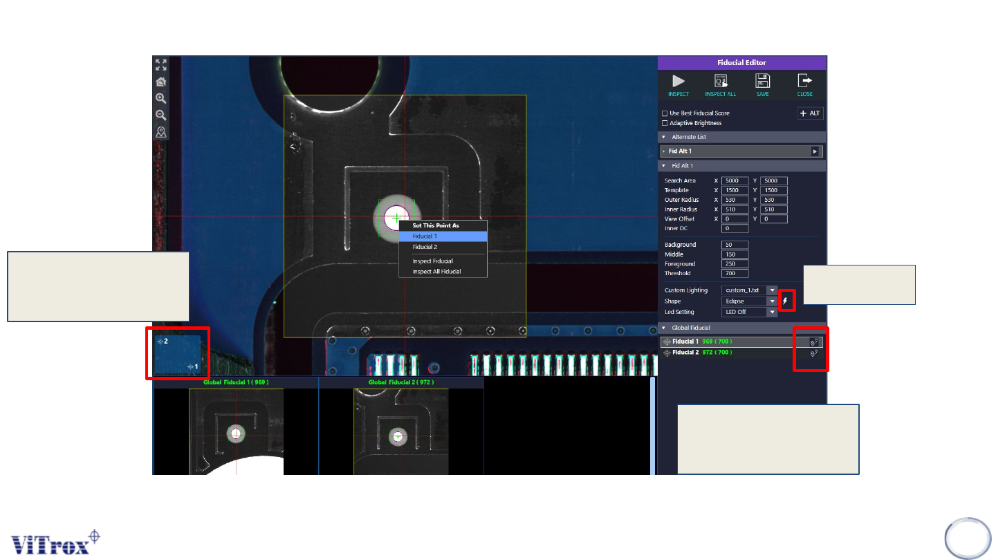 Copyright © ViT rox All Rights Reserved . Fiducial Editor 23 • User need to set fiducial instead of move fiducial box to the location expected location. Fiducial Location guideline Go to Estimate fiducial location Auto T…