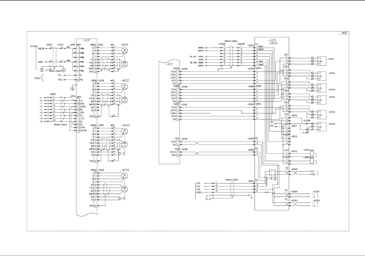 4-47 0606-001 -(M829WM---0021) ᅞ㺚༉偁䖓⬊䏄 % ᅞ㺚༉偁䖓⬊䏄 % Head Axis (B) Main Circuit Power Supply Control Circuit Power Supply From -U25 (UB19) Head Rotation Nozzle Selection Nozzle U/D Head U/D Red White Black Green Oran…
