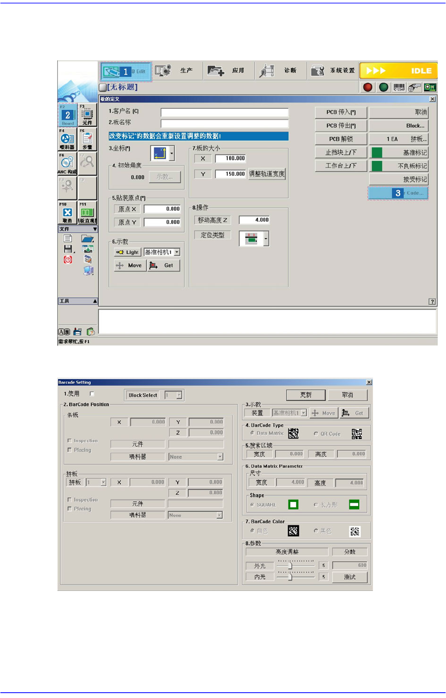 置进行示教,或者为了在板子上贴附2D条形码而进行设置。
