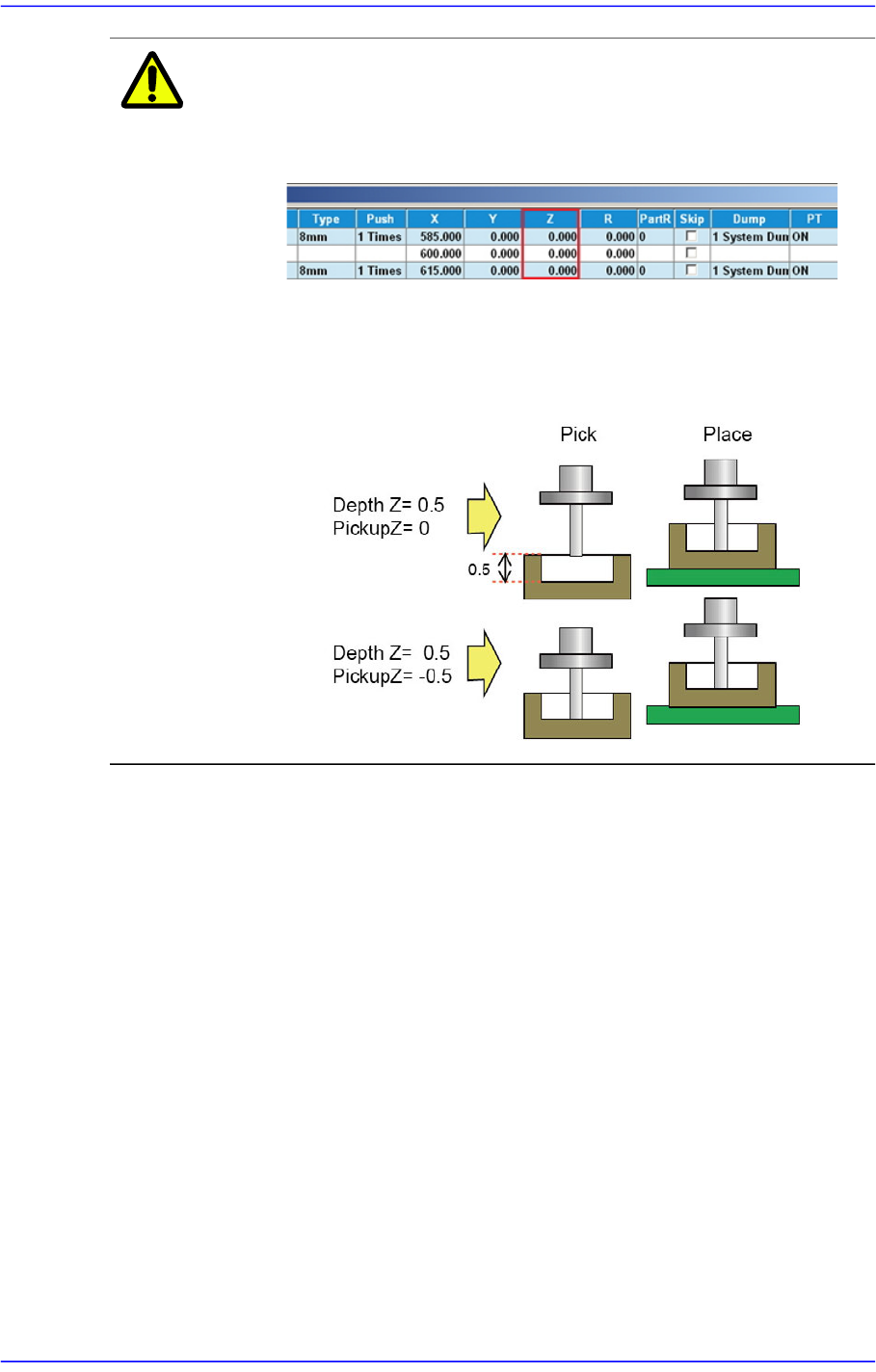 注 意 设定了Z深度(Depth Z)时就会反映到自动吸附高度(Pickup Z),